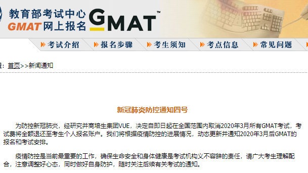 同樣的, 美國管理學研究生入學考試(GMAT) 也宣布取消3月份考試安排。