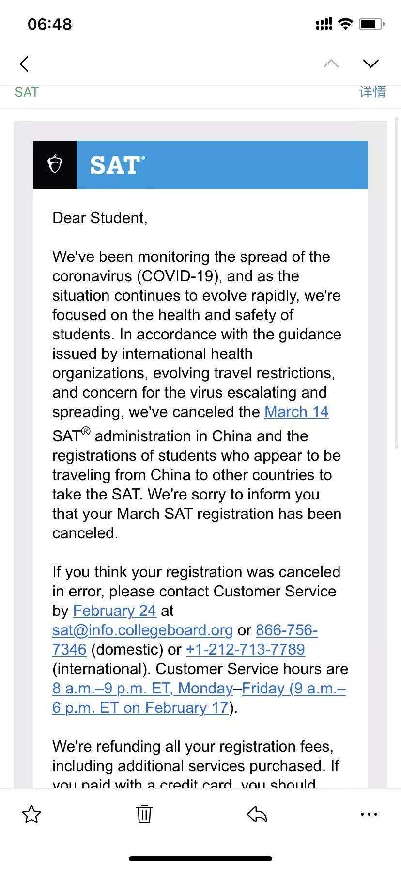 正當SAT考生的心又提起來了,擔心3月份SAT到底能不能考的時候,這不,今天就來消息了,取消!