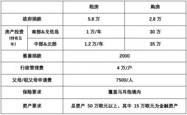 其次,從投資金額來看,整體投資額度最低僅需7萬歐元,包含5.8萬歐元的捐款,2000歐元的慈善捐款和1萬歐元一年的房租,匯款難度更小,投資更加便利。