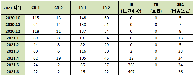 對(duì)移民簽證來說,5月份和6月份的EB-5區(qū)域中心簽證數(shù)量比三四月份有所增加,基本上是簽發(fā)了100個(gè)家庭左右。