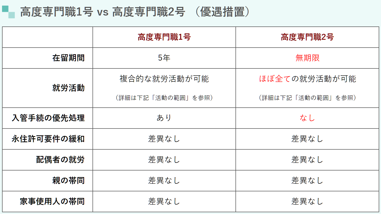 高度人才簽證主要分成2個級別:高度專門職1號,高度專門職2號。